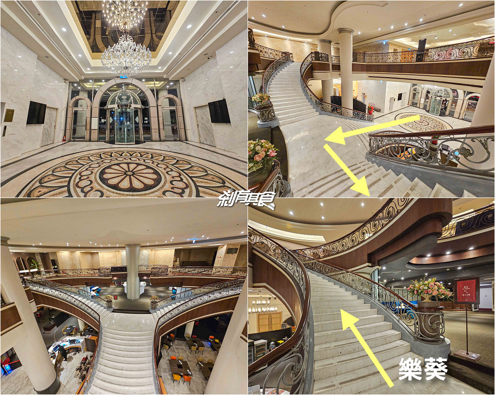 一進來就覺得裝潢很氣派,穿過華麗的水晶吊燈大廳,走弧形樓梯左轉上二樓就可以走到「樂葵法式鐵板燒崇德店」了,也有電梯可以搭乘。