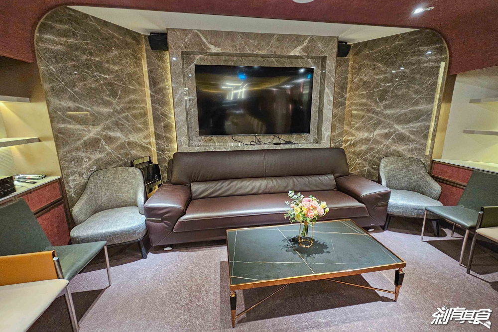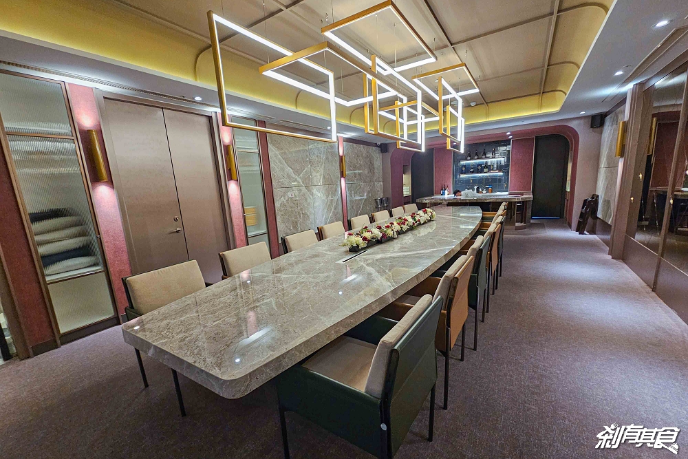 有2個包廂,各可坐10人,大理石的桌面看起來很有質感,利用鏡面折射增加空間感,讓人覺得很漂亮且不會有壓迫感。