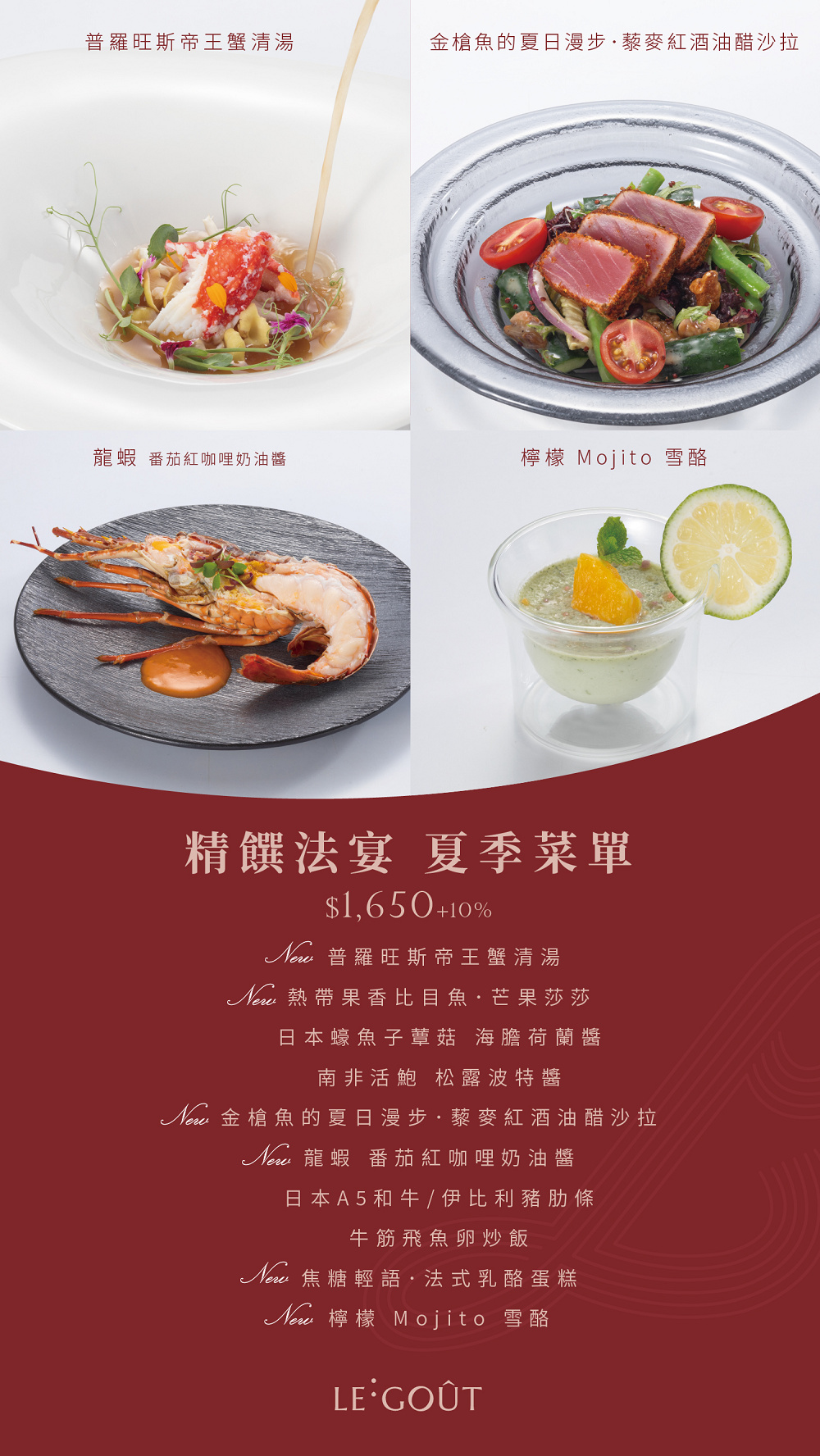 店名le goût是法文「味道」的意思,而醬汁更是法式料理的靈魂,秉持著保留鐵板燒新鮮原味的精神,藉由搭配多款法式經典醬汁,更增添餐點美味的層次與深度