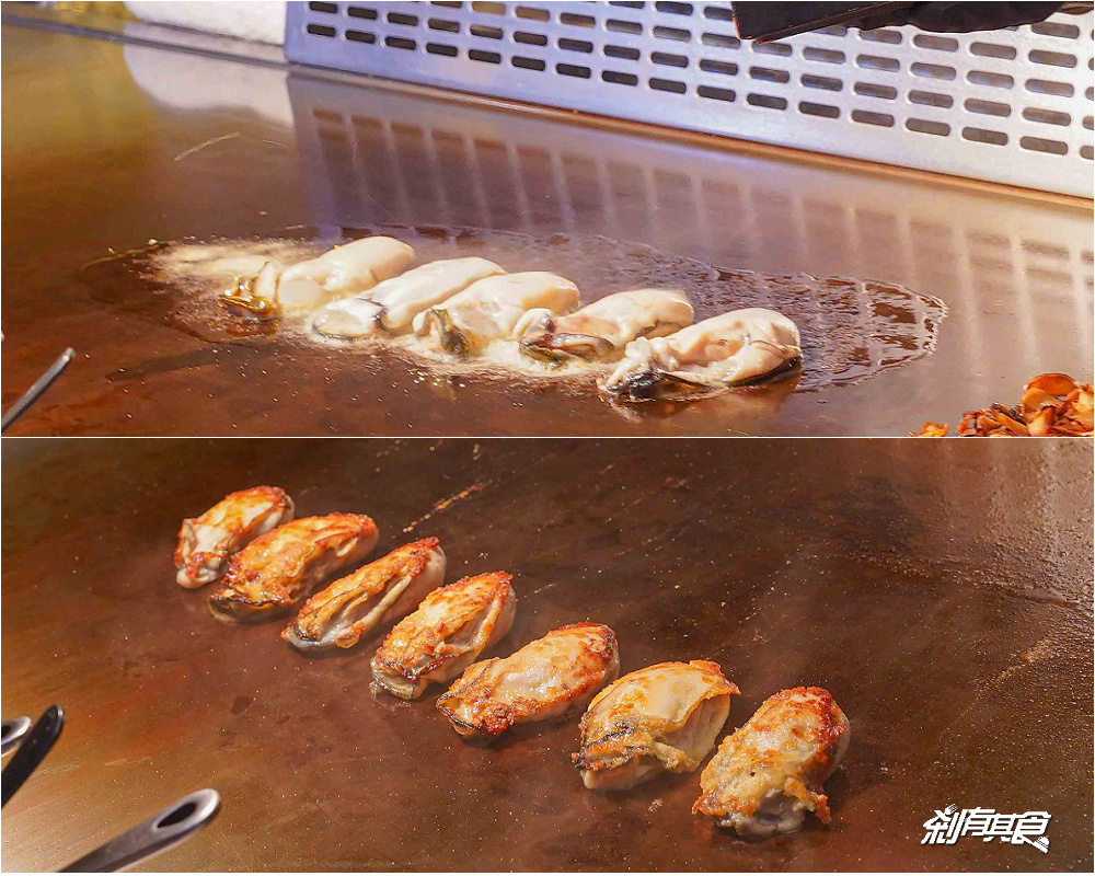這道菜的製作過程看得我是口水直流,師傅先煎日本播磨生蠔,看起來非常飽實肥美,簡單煎至表面微酥。