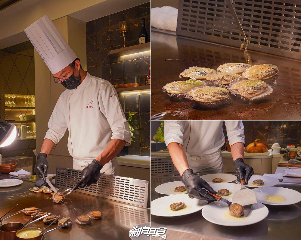 再來處理的是「南非活鮑」,追求食材原味的師傅,只加了白蘭地去香煎活鮑,為的就是保留鮑魚的鮮味。