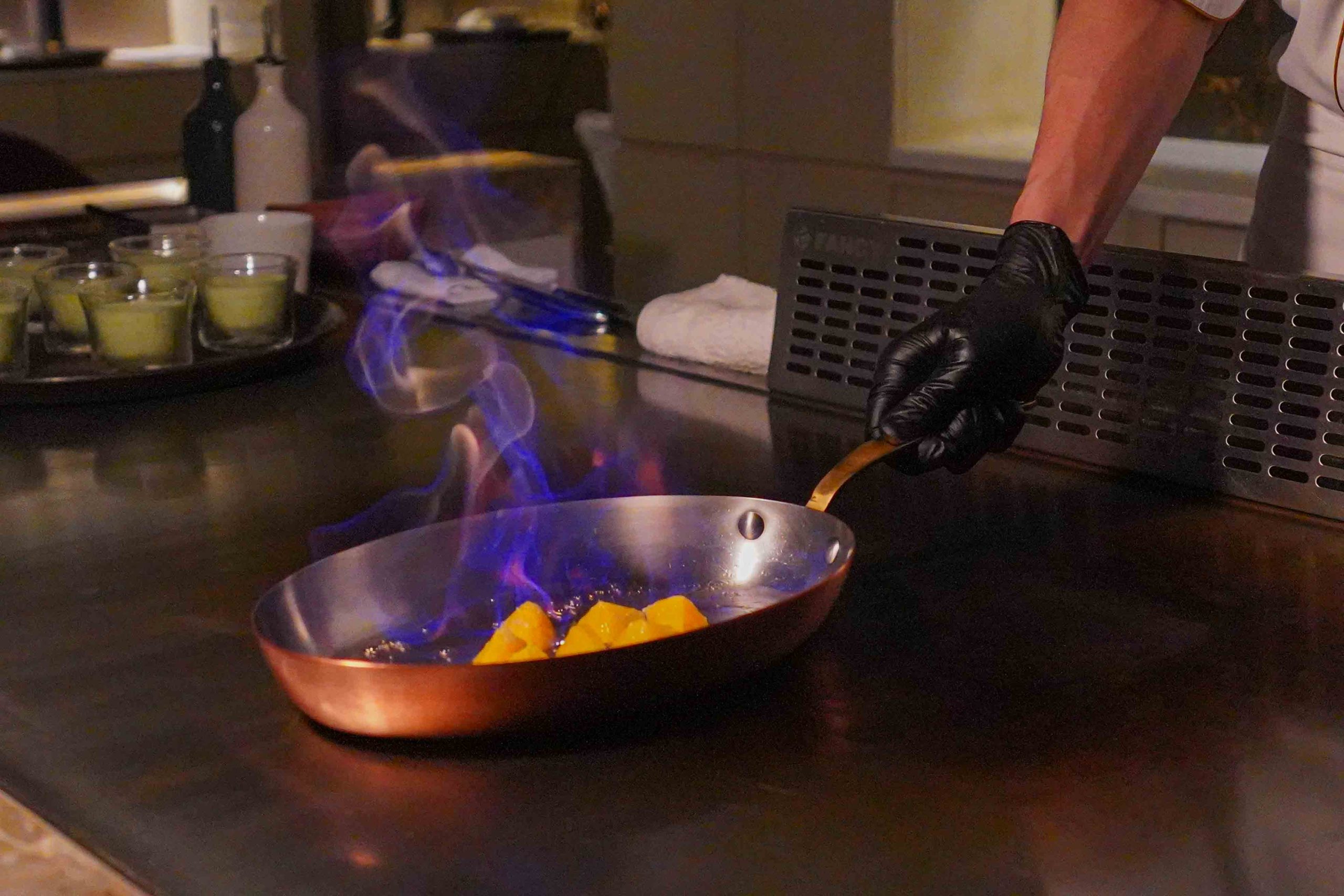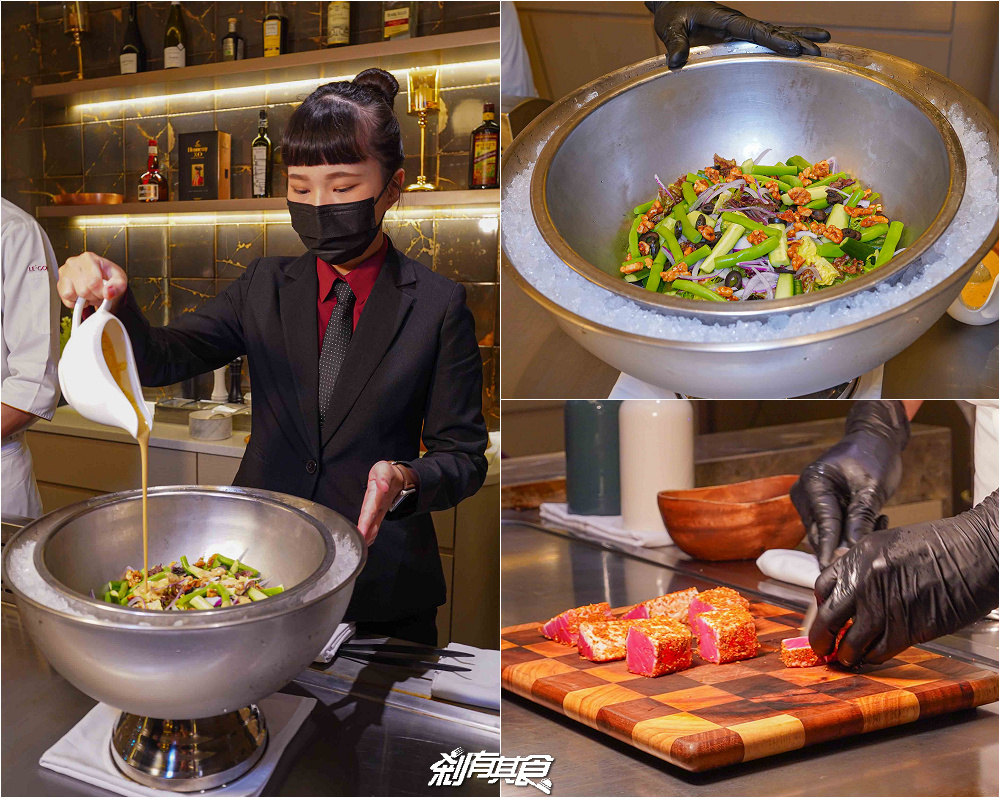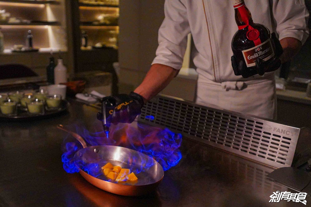 離客人的距離其實還蠻遠的,而且一下子就結束了,所以不太會有安全疑慮,酒精燃燒後剩下酒香味,這居然只是在準備其中一個食材而己,太有儀式感了吧!!
