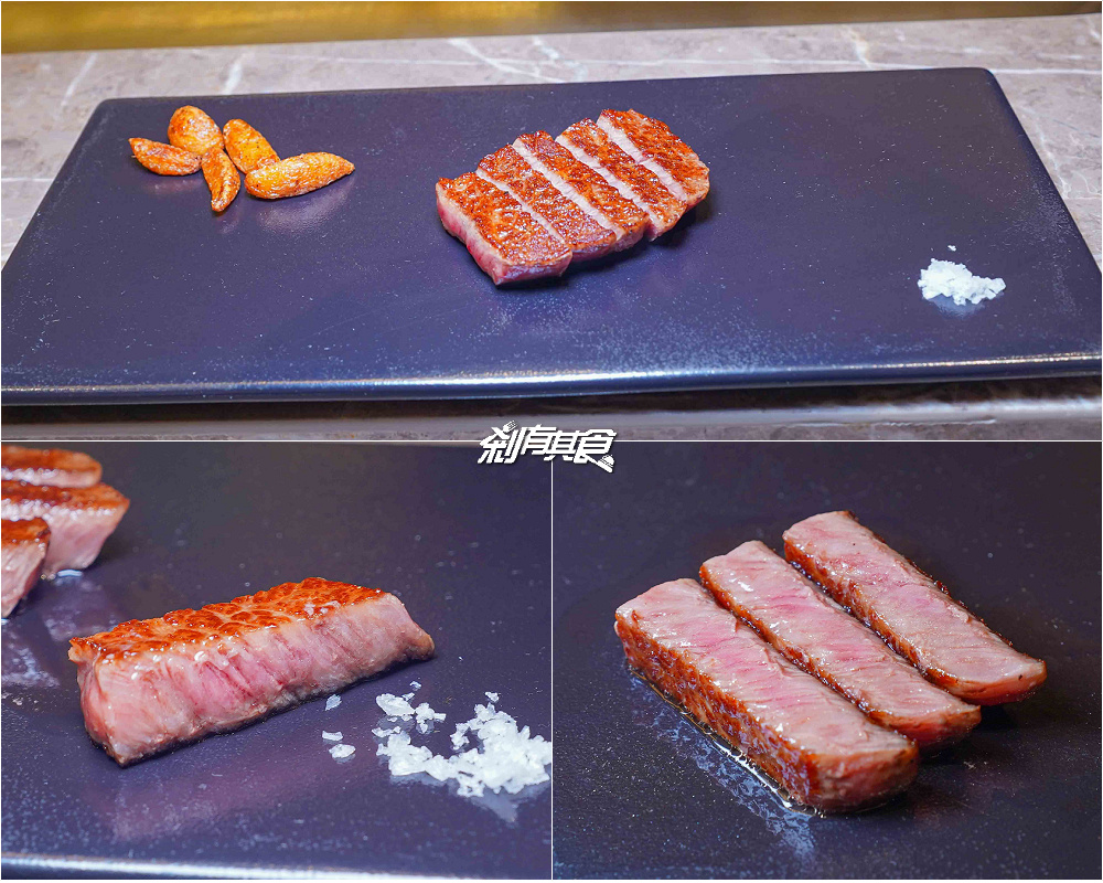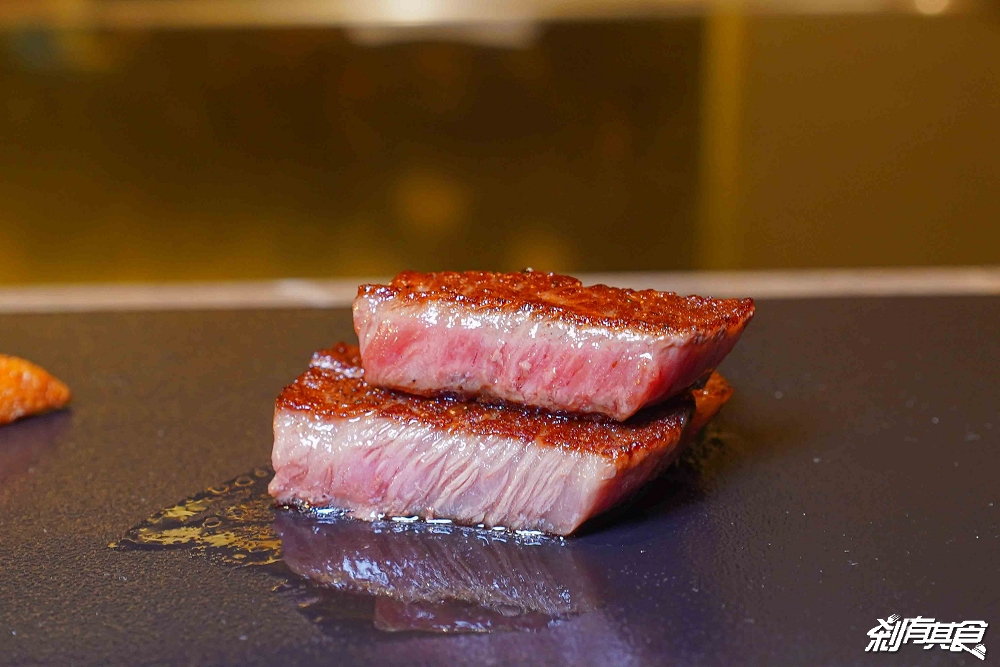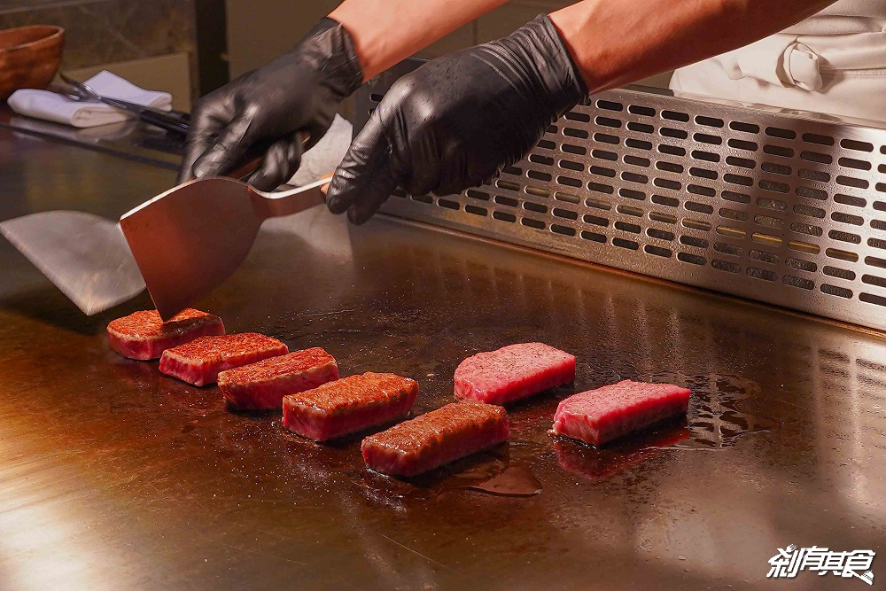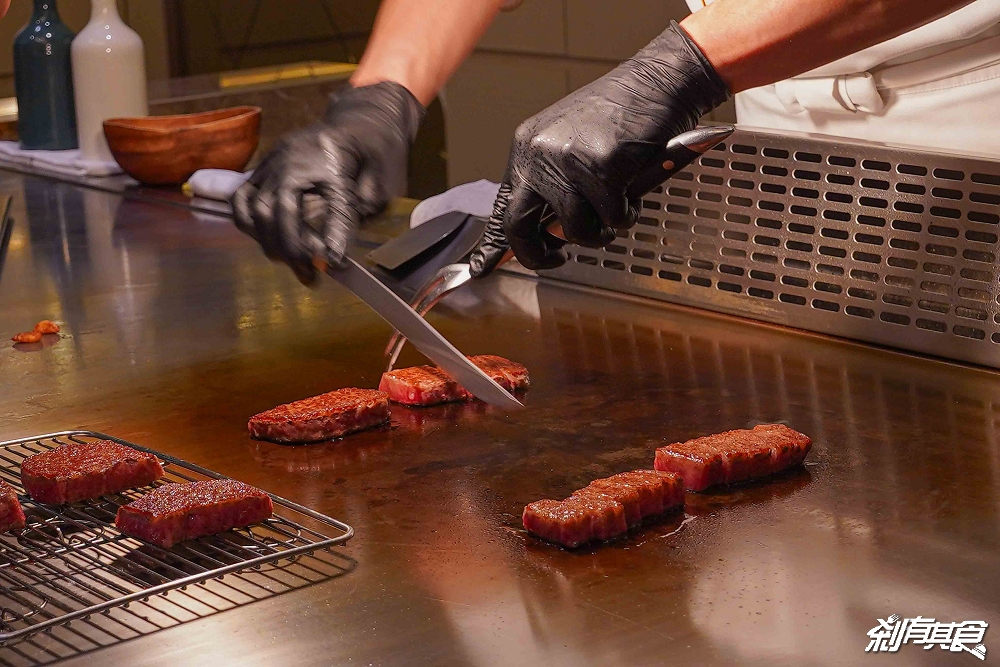 這麼頂級的和牛,當然料理方式就是要越簡單越好,師傅煎起和牛牛排非常專注,還會靜置讓肉汁重新被鎖進肉裡,最後再切成適口大小。