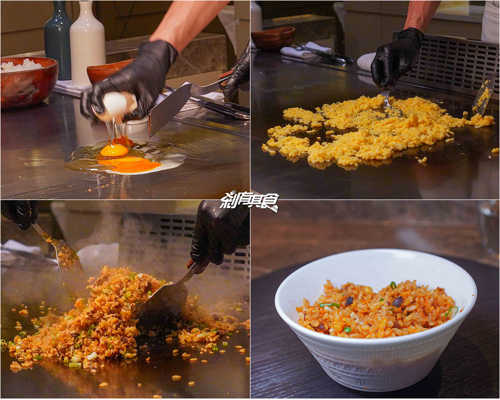 這道是利用處理 日本A5和牛時切下來的牛筋來製作,加入台南11號米、葉黃素蛋、飛魚卵一起拌炒,師傅用的是黃金炒飯的做法,先把蛋液與白飯融合後再開始炒,這樣蛋會完整包覆米粒香氣四溢,吃起來粒粒分明還有飛魚卵的彈跳口感,口感更有層次,明明已經很飽了,但還是吃光光😆