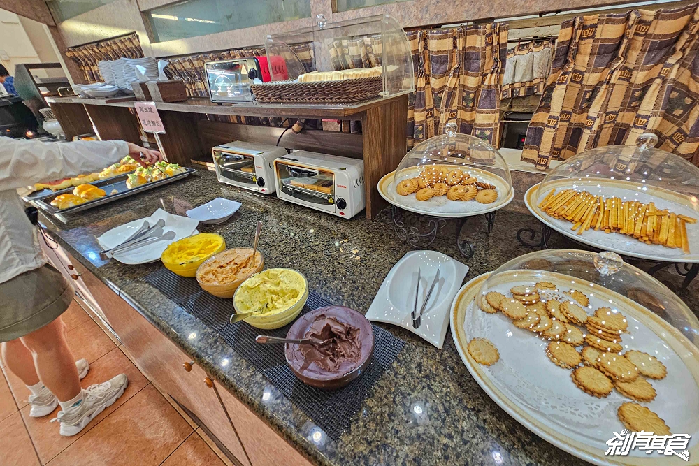 一般常見的烤吐司DIY這裡當然也有,有奶油、花生醬、巧克力醬、香蒜醬,還有西點餅乾可以開開胃。