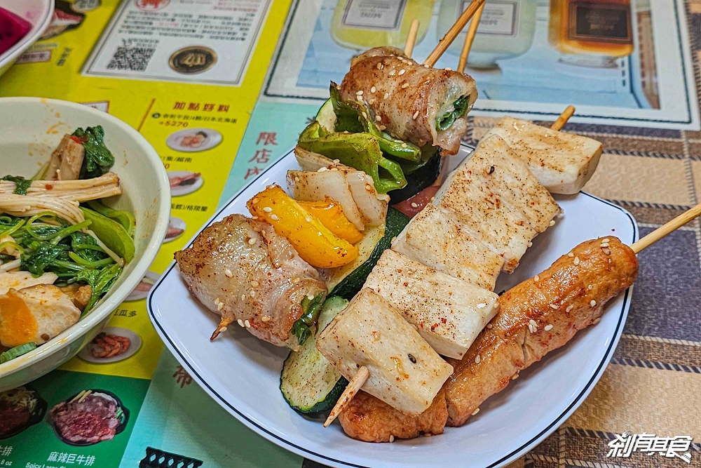 煮火鍋到一半又聽到出爐了,這次居然是「串燒」!有肉串、甜不辣串、菇菇串…等,有灑上鹹香調味粉,完全不輸外面串燒專門店喔~