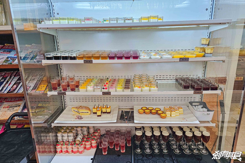 飲料甜點區也有很多好料別錯過,有各種奶酪、果凍、布丁…等,看到養樂多是一箱一箱在補貨,還有奶蓋飲料也很受歡迎。