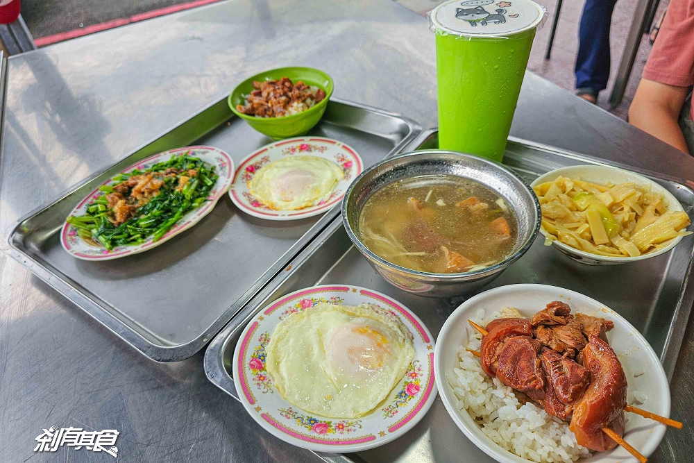 主要是「爌肉飯、魯肉飯、雞肉飯」也能做成便當,湯類有綜合湯、大腸湯、瘦肉湯、豬血湯…等,還有白菜魯、筍干、荷包蛋,價格不算貴 (不過7/1漲價後就不知道了😂), 對了,評論中還有推薦「古早味紅茶」。