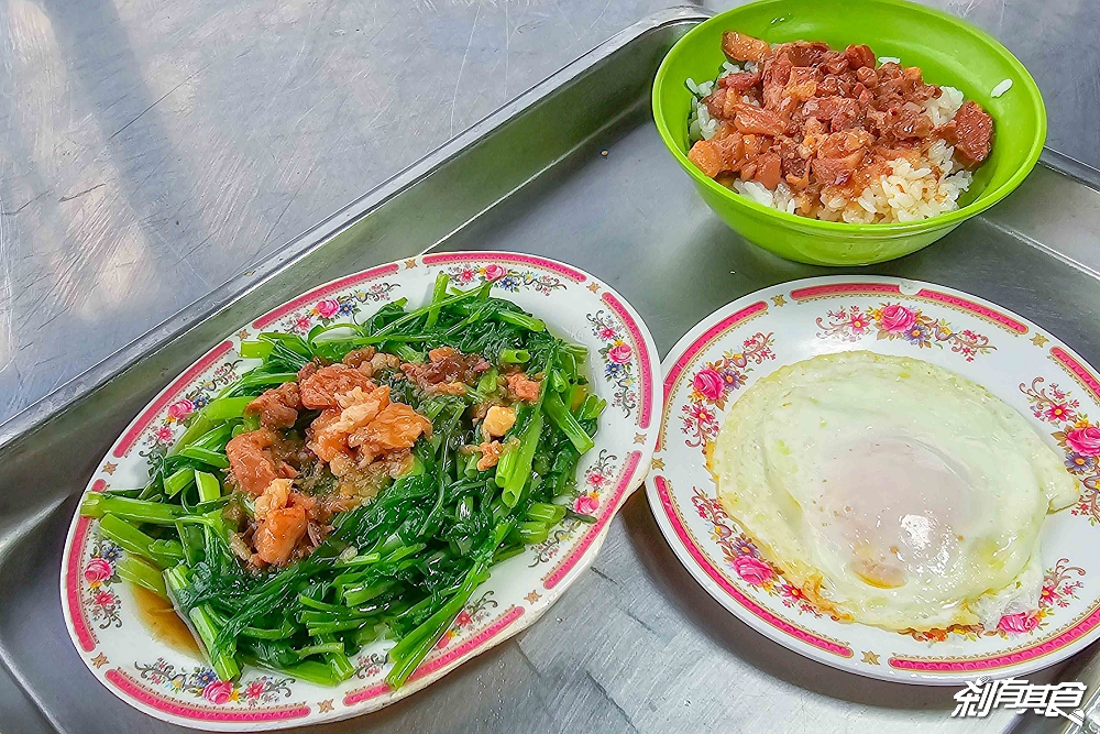 我們第一次來點了爌肉飯、魯肉飯、綜合湯、燙空心菜、荷包蛋、紅茶來吃看看,先說結論確實挺不錯的,好吃度更甚我之前介紹的「阿彬爌肉飯」。