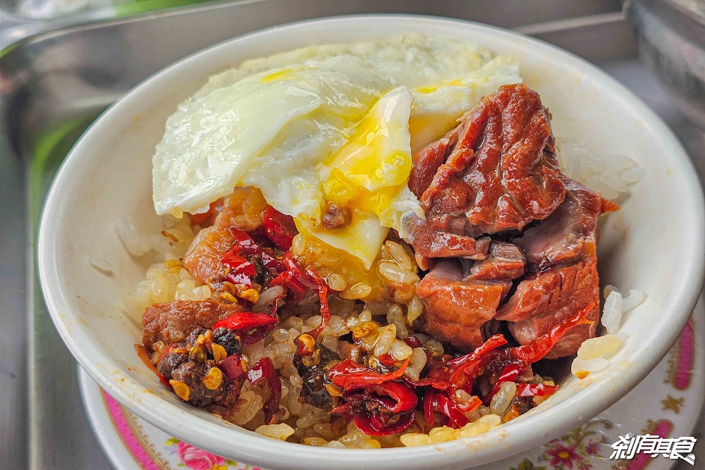 劃破荷包蛋流下的蛋黃跟爌肉、辣椒融為一體,一口吃下真的升天,太好吃了!!