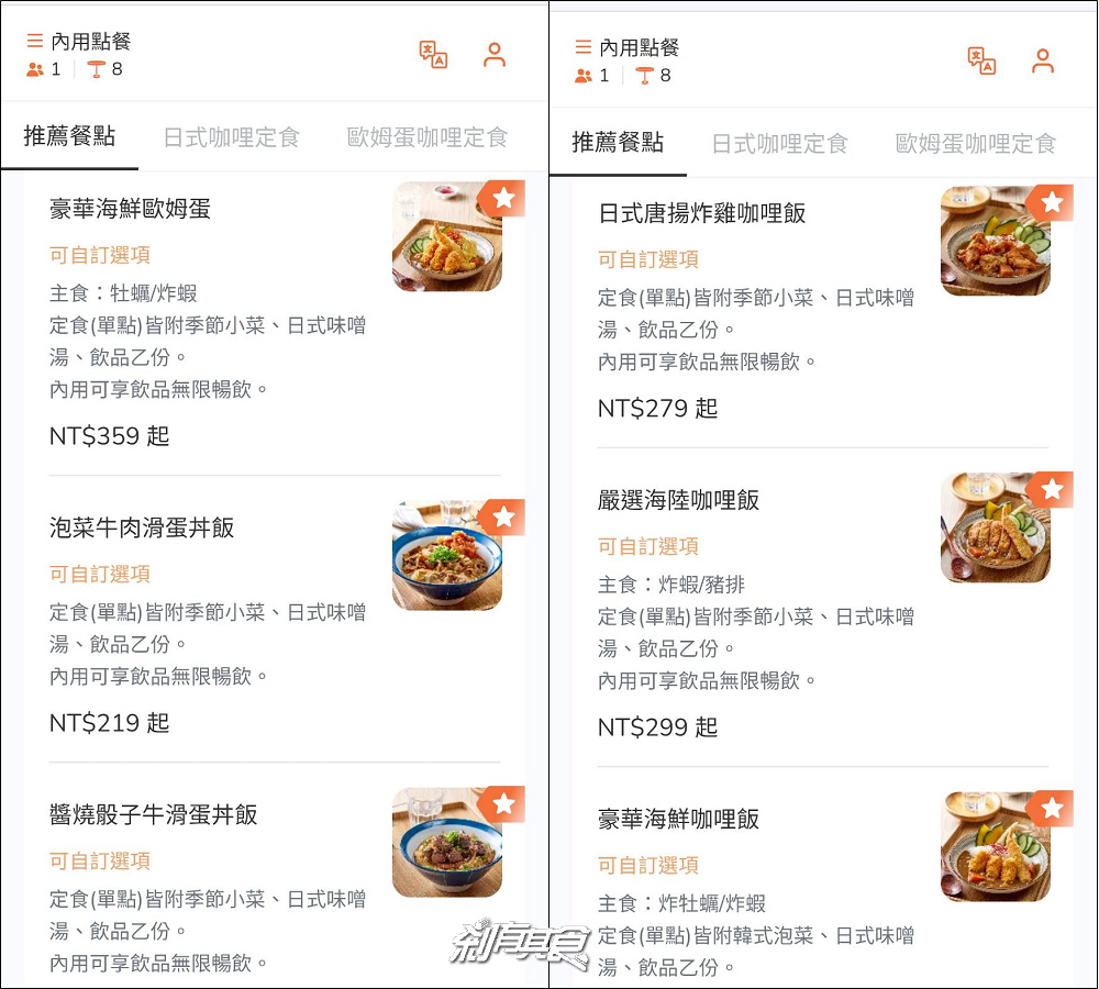 今天我們第一次來,點了招牌的「日式黃金豬排歐姆蛋咖哩飯、燉牛肉滑蛋丼飯、牡蠣野菜天婦羅」,還有新品「豪華海鮮生菜沙拉定食」來吃看看,先說結論真的每款都好吃,而且飽足感十足,跟著我們繼續看下去~