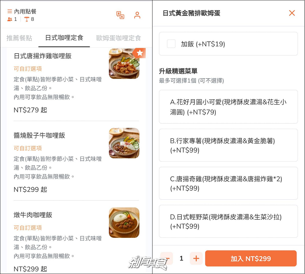 日式黃金豬排歐姆蛋咖哩飯定食 299元