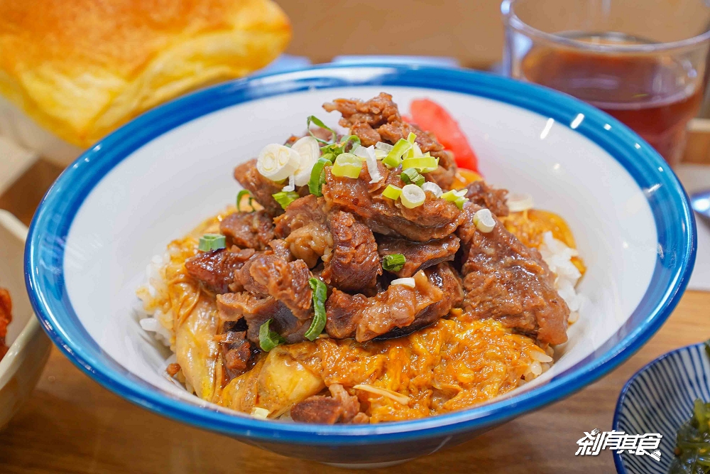 「燉牛肉滑蛋丼飯」也是現點現做滑蛋,半熟的滑蛋與醬汁倒入熱騰騰的白飯上面,再放上燉煮了好幾小時的燉牛肉,灑上一點蔥花,看起來非常好吃。