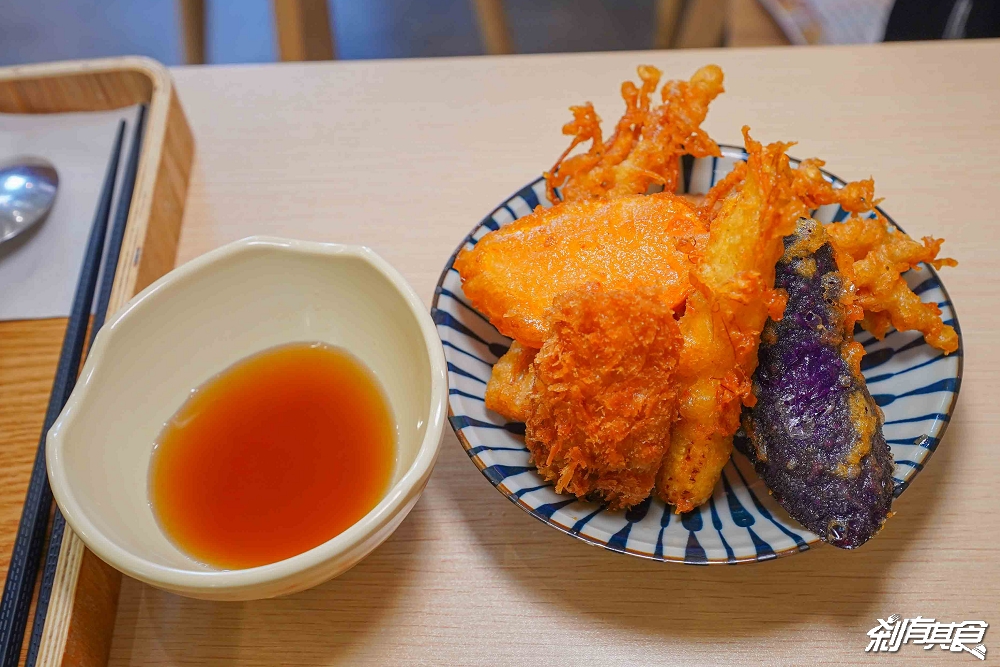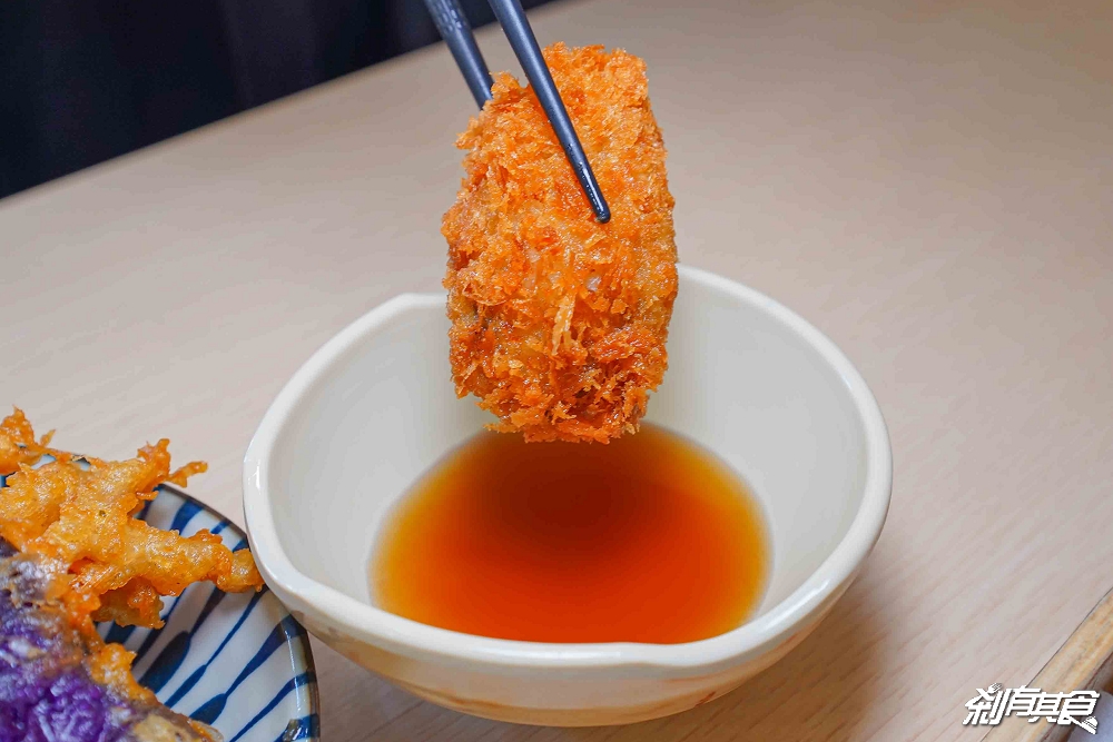 「牡蠣野菜天婦羅」裡面有酥炸金針菇、小津地瓜、揚出豆腐…等,還有好吃的炸牡蠣 👍