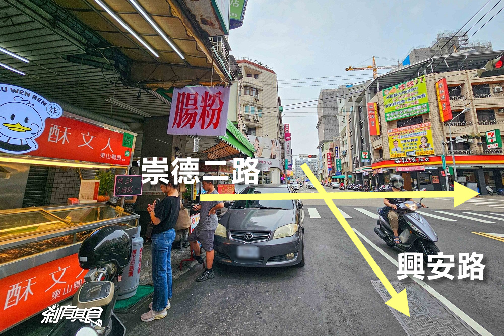 「酥文人東山鴨頭興安店」位於興安路、崇德二路交叉口附近,紅色招牌還蠻好認的!