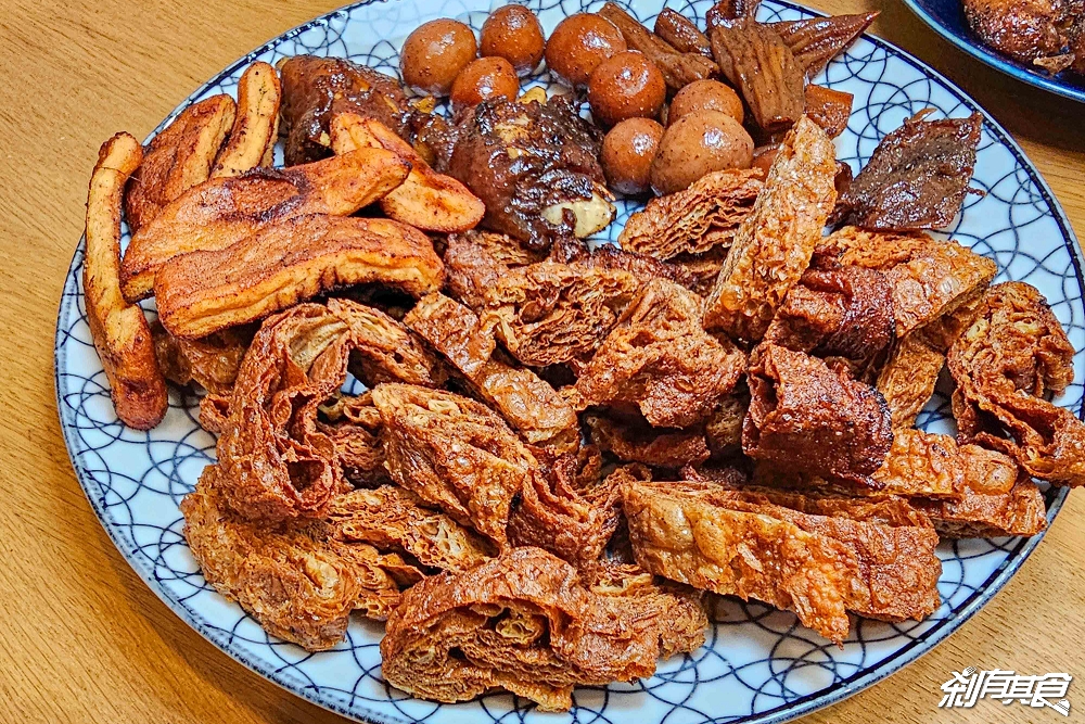 我看了一下製作過程,雖然沒有聊到天,但發現老闆娘處理的很用心,不同食材炸的時間不一樣,她會分開炸,然後較乾的食材像是豆皮、蘭花干會放在同一包,鴨頭、鴨翅這種就放一包。