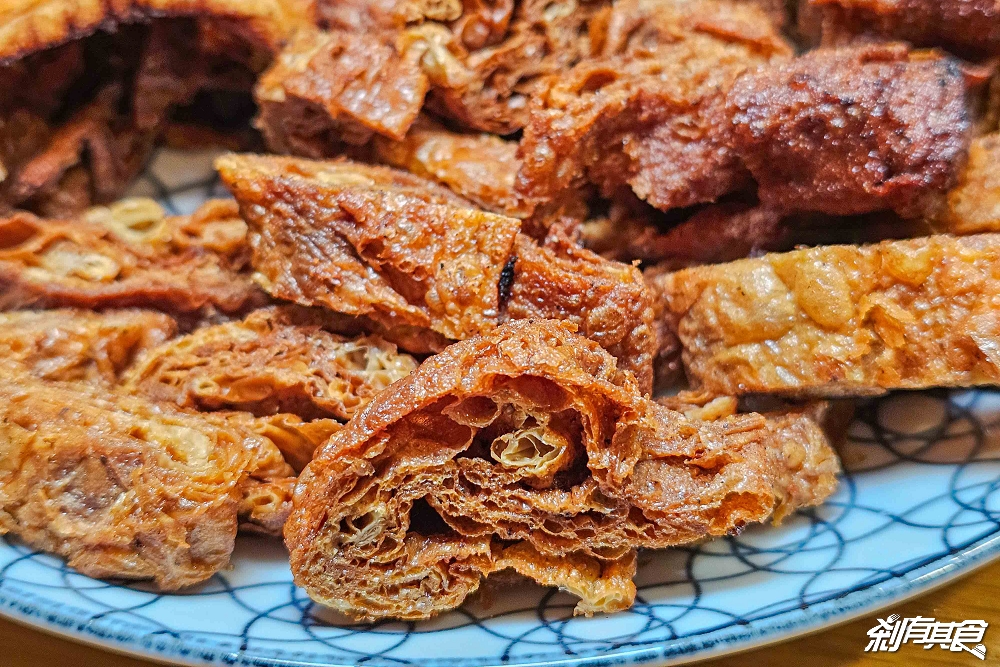 我買了兩份豆皮,結果份量還蠻多的,我上次吃到這個豆皮有嚇一跳,口感跟其他家完全不同,不是外酥內Q,而是整塊都是酥脆的!就像在吃餅乾一樣,評論也是很兩極,喜歡的人很喜歡,也不少人不喜歡,第一次買的人建議先買一份試試。