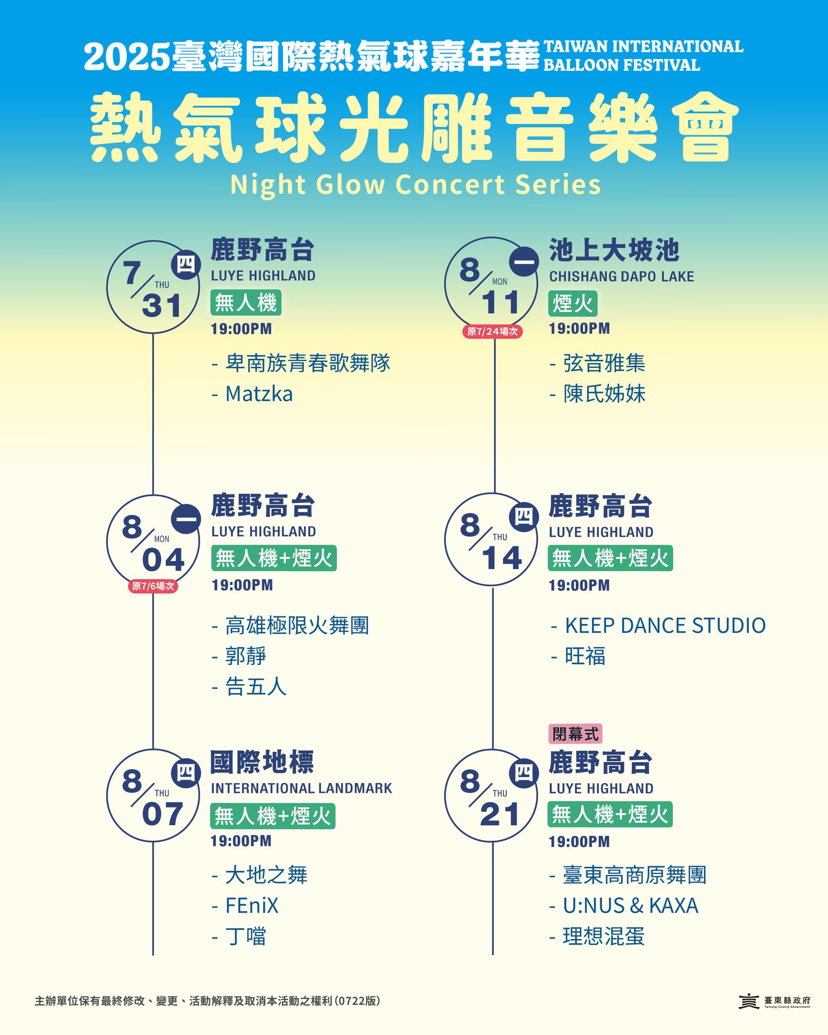 原定 𝟳/𝟮𝟰 (四) 池上場次 ➜ 延期至 𝟴/𝟭𝟭 (一) 原地舉行