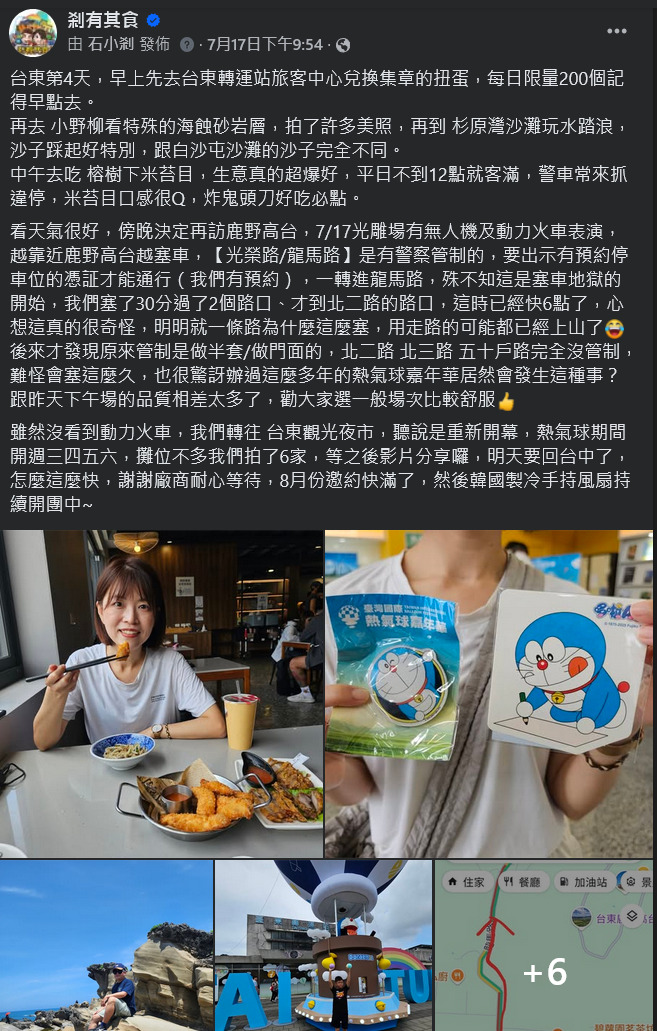這次來台東看台東熱氣球嘉年華,我們安排了5天4夜的台東行程,看了傳說中的台東藍、小野柳,果然真的很美,也吃了鬼頭刀魚、紅烏龍茶、全台最強貴族世家、還有許多剎友推薦的台東美食…等,