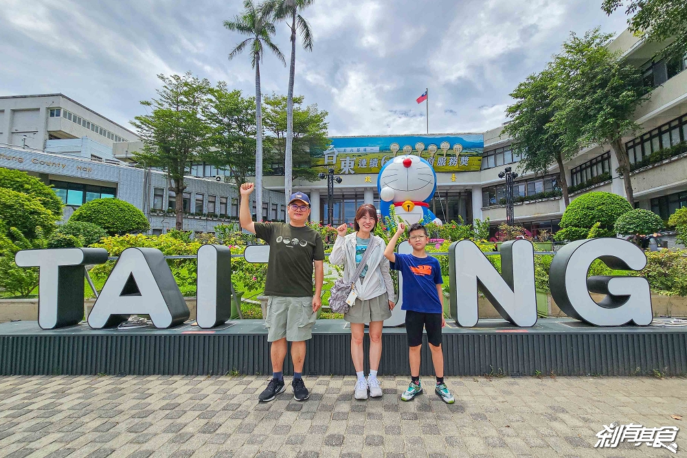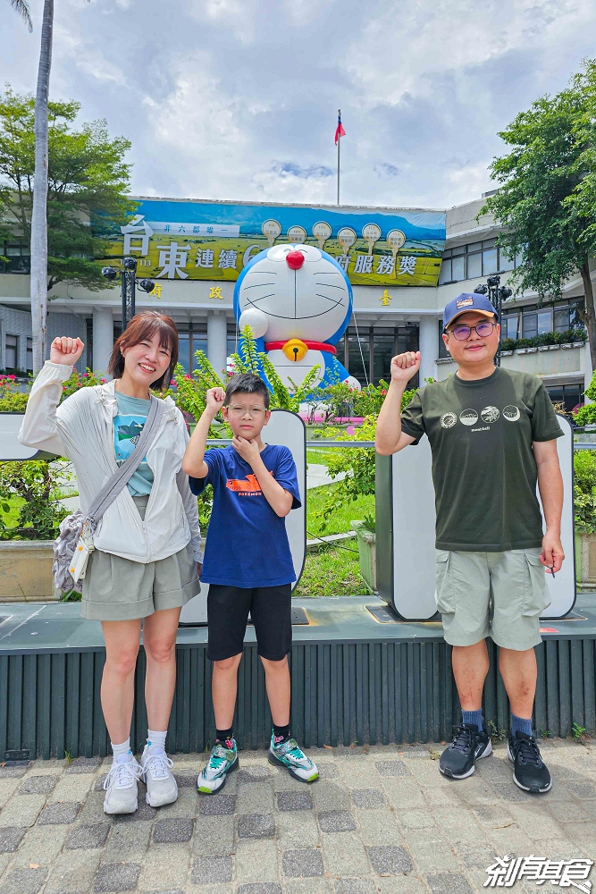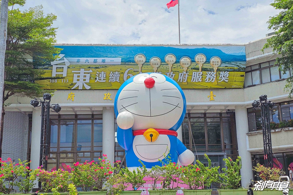 巨大的哆啦A夢出現在「臺東縣政府門口廣場」,這個打卡點大家也不要要錯過,除了拍照打卡之外、還有哆啦A夢塗鴨集章,這裡也有廁所、飲水機、咖啡廳,當作一個休息站也很OK,另外還有「藍蜻蜓速食專賣店、果珍濃台東水果珍奶」可以一起攻略。