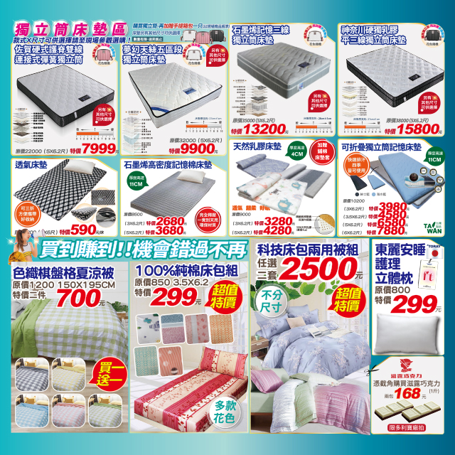 「多利寶寢具廠拍特賣會」本次優惠力度是今年最大的,最低1折起: