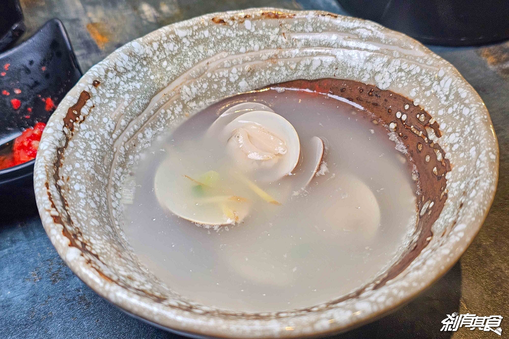 這裡提供一個隱藏版吃法,把蛤蠣倒入碗裡,然後加入「雞白湯」就變成更好喝的湯,哈哈