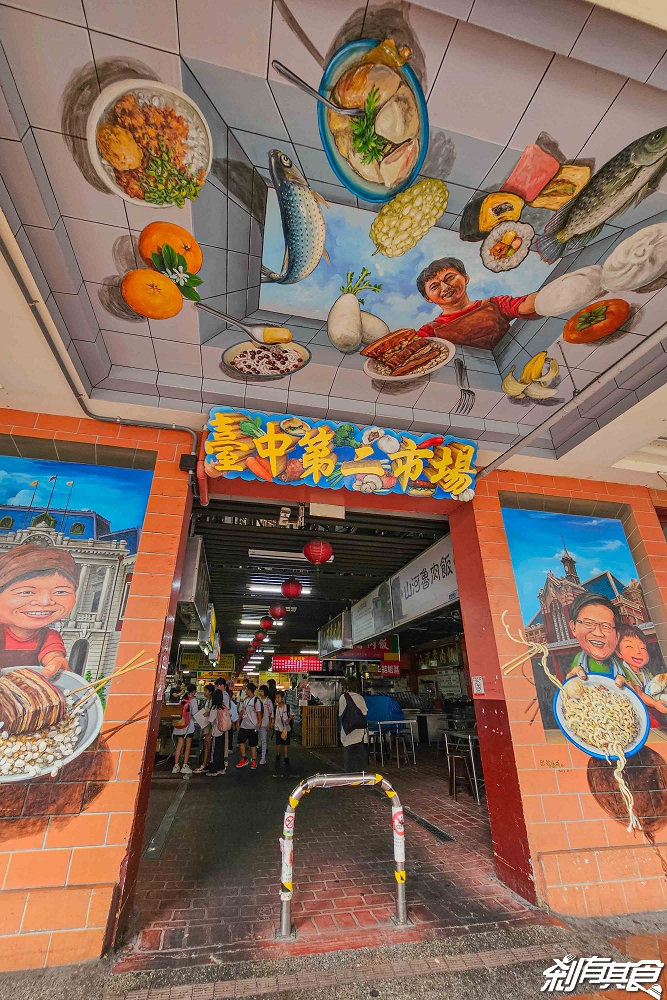 「魚皮李魯肉飯」就在台中第二市場裡,大家可以從台灣大道這側進入,會比較近,門口的牆上、天花板有可愛的彩繪應該不容易錯過。
