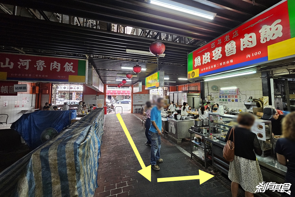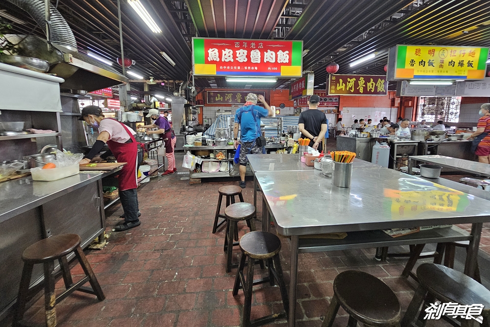 從這個角度可以看到其他家招牌,台中第二市場裡面就有李海魯肉飯、山河魯肉飯、聰明擔仔麵 (也賣魯肉飯),加上剎友們跟我推薦的「魯肉邱」,根本就是台中魯肉飯激戰區嘛!